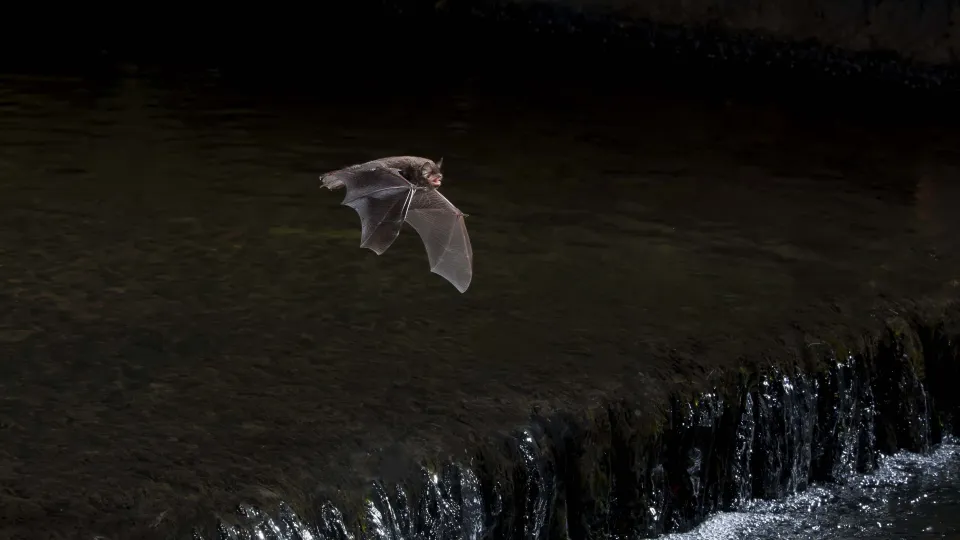 Look out for the Daubenton's bat foraging over wetlands across the UK at twilight. Its flight is fast and agile as it skims the water's surface for insect-prey.