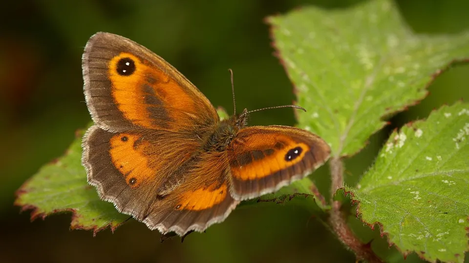 The gatekeeper is on the wing in summer on grasslands, in woodlands and along hedgerows. Look out for the large, distinctive eyespot with two 'pupils' on each forewing.