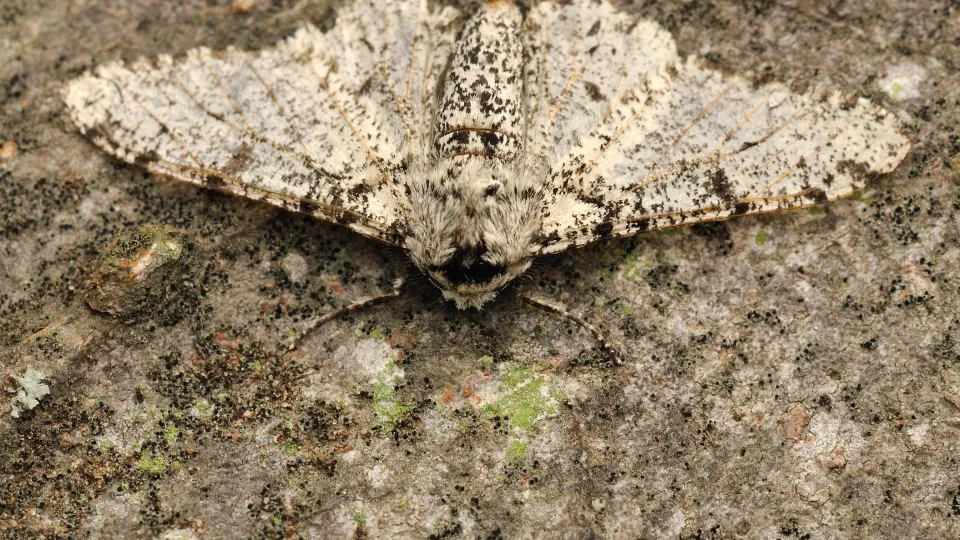 The peppered moth is renowned for its markings that have evolved to camouflage it against lichen in the countryside and soot in the city. It can be seen in gardens, woods and parks, and along hedgerows.