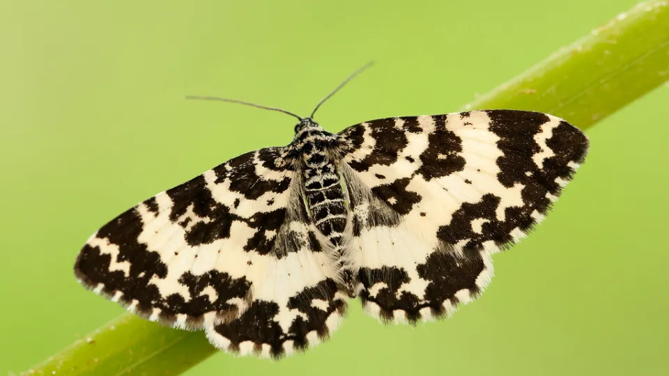 This striking black-and-white moth flies during the day in open woodlands, moorlands, and bogs. It's most common on Scottish moors.
