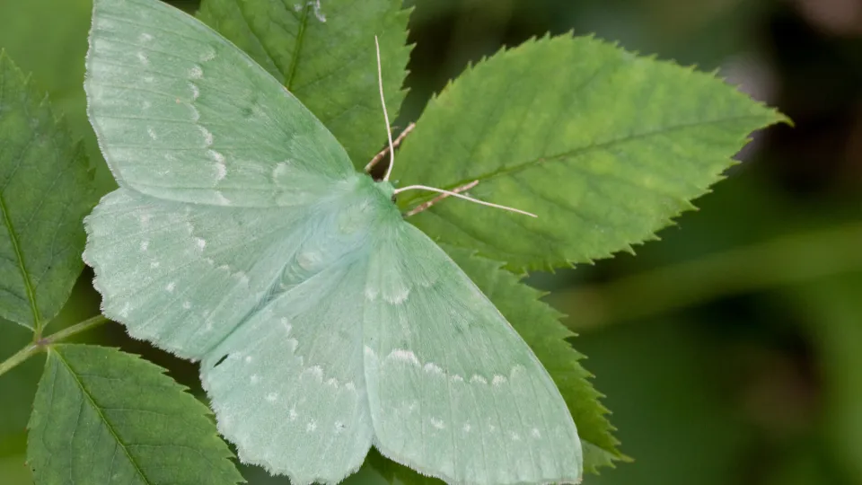 This large green moth rests with its wings spread, so is sometimes mistaken for a butterfly.