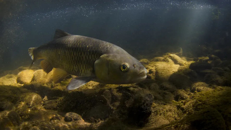 The common carp is a very large fish that is popular with anglers due to its size and fighting spirit. It frequents ponds, gravel pits and lakes, but is not native to the UK, being introduced in the Middle Ages.