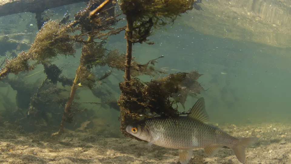 The silvery chub can be seen gathering in large shoals in lowland rivers and streams. It is a member of the carp family and looks very similar to the dace, but is larger and has redder fins.