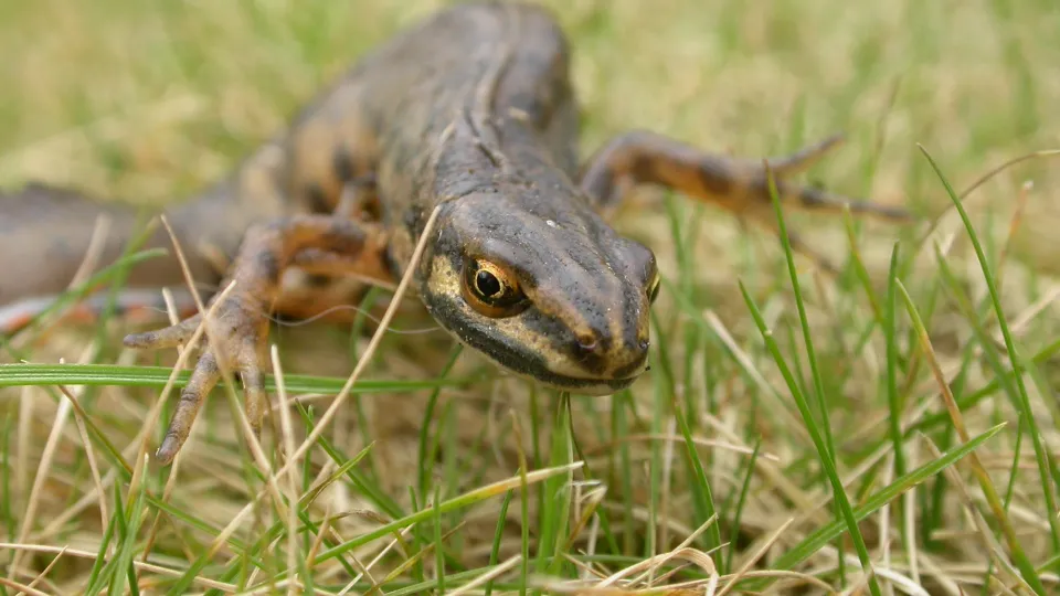 You are likely to spot the smooth newt in your garden or local pond. It breeds in water in summer and spends the rest of the year in grassland and woodland, hibernating over winter.