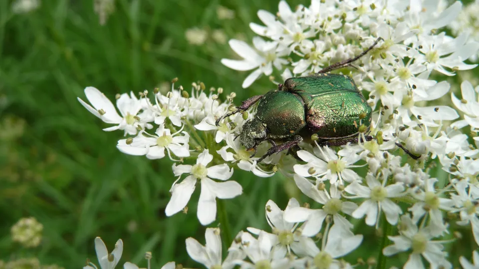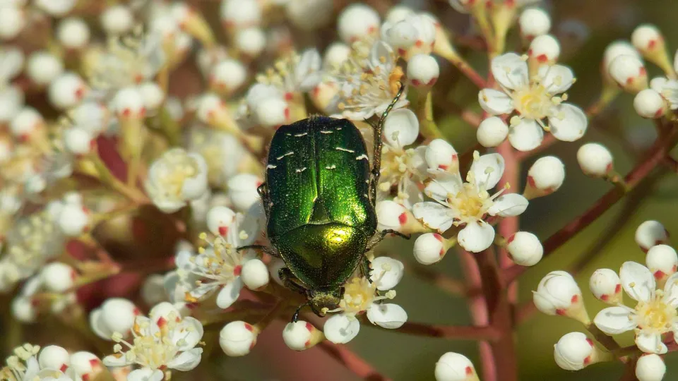 The rose chafer can be spotted on garden flowers, as well as in grassland, woodland edges and scrub.
