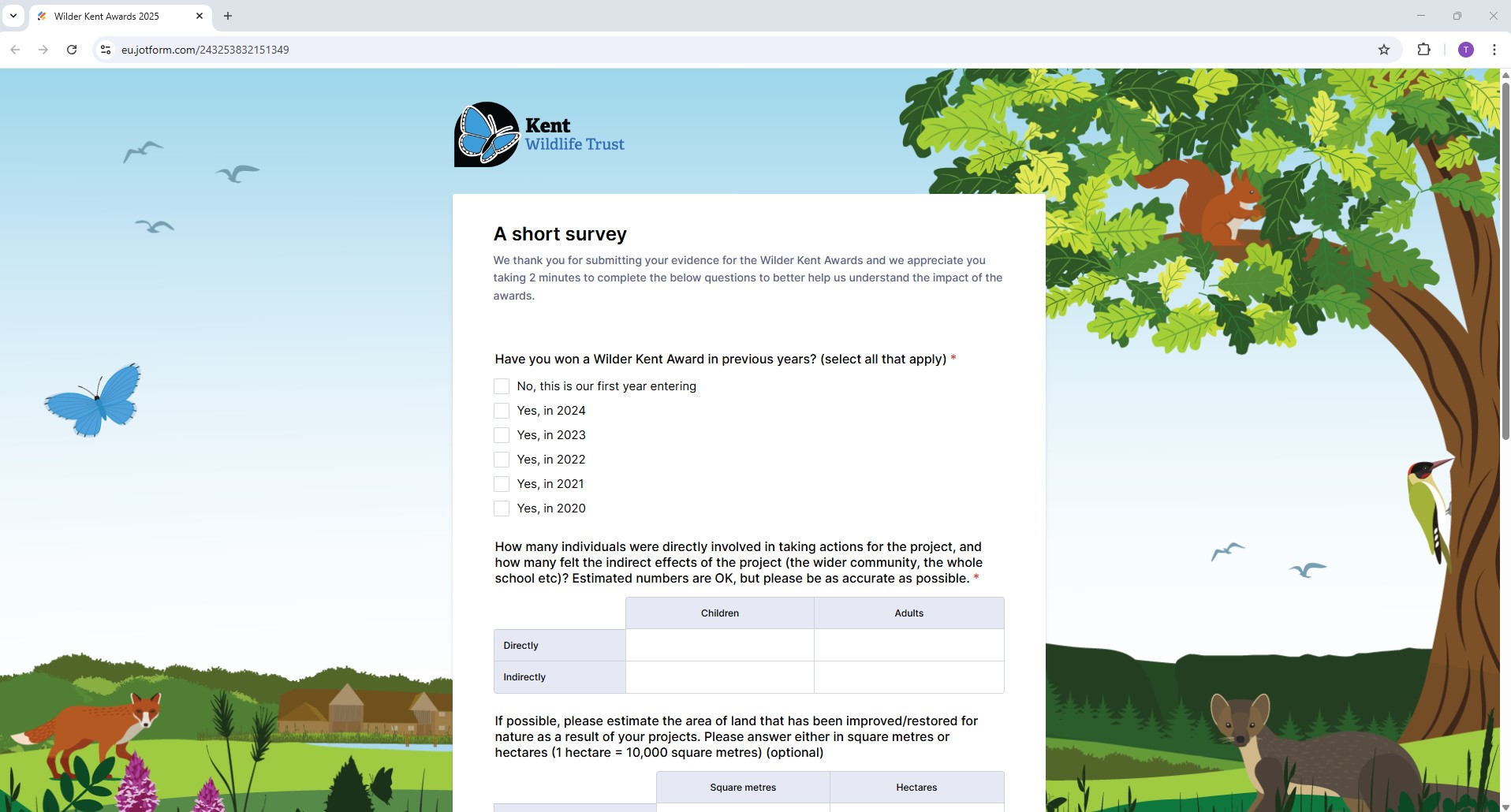 When you registered to enter the awards, you should have received an email titled ‘Thank you for signing up to Wilder Kent Awards!🏆’ which included a link to download your entrant’s guide. This will be different depending on which category you are entering. These are full of tailored ideas for each entrant category and will help us work together across the county to create a #WilderKent.
