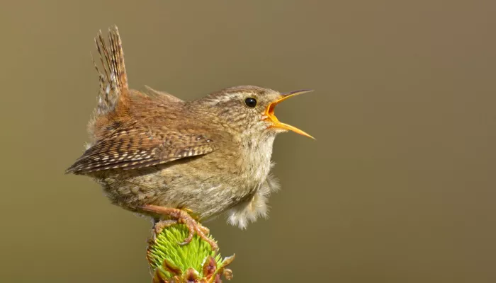 A tiny, brown bird with a short, cocked tail and a loud voice, the wren is unmistakable.