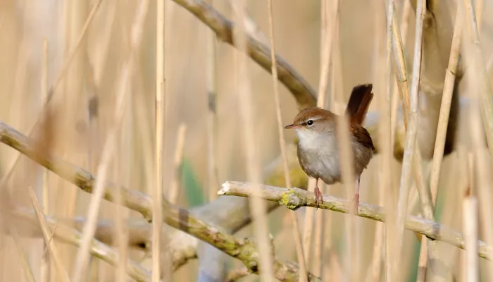 Named after 18th century zoologist, Francesco Cetti, the Cetti's warbler is a medium-sized warbler of willow scrub, marshes and nettlebeds. It can be very difficult to spot, but you may well hear it singing loudly from the cover of dense bushes. Resident all year-round, in summer, male Cetti's warblers spend their time defending territories, while the females lay their bright red eggs and raise their chicks.