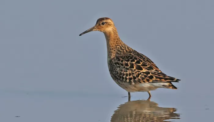 The ruff is a large sandpiper; a typical wader, it feeds in shallow water around lakes and wetland areas near the coast. Just a handful of pairs breed in the UK, but some birds are present all year-round. During summer, young birds on their way to Africa from Scandinavia stopover in the UK.