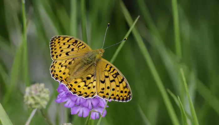 Adult dark green fritillary are tricky to spot as they quickly flit from flower to flower, feeding on the nectar of knapweeds and thistles. Despite its powerful flight, however, it doesn't tend to move far from its breeding grounds.