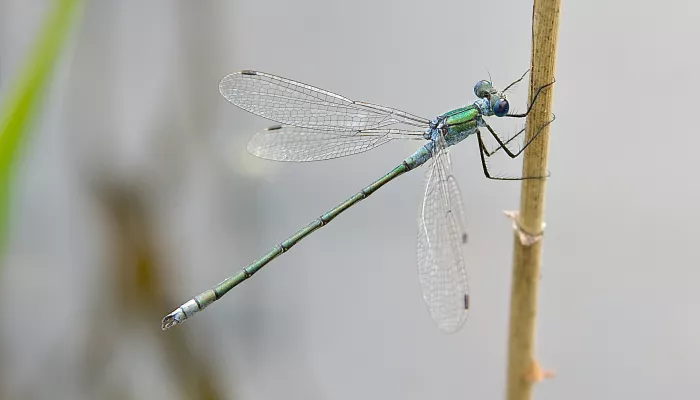 The Emerald damselfly is a medium-sized damselfly that lives among lush vegetation around the edges of ponds, lakes, ditches and canals. When perched, Emerald damselflies have a habit of holding their wings half-open, rather than closed along the length of their body like other damselflies. The last species of damselfly to emerge in the UK each year, they are on the wing from the end of June to September.