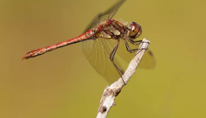The Common darter is a red, narrow-bodied dragonfly that can be seen throughout summer and autumn. It hovers around all kinds of waterbodies, darting out to surprise its prey.