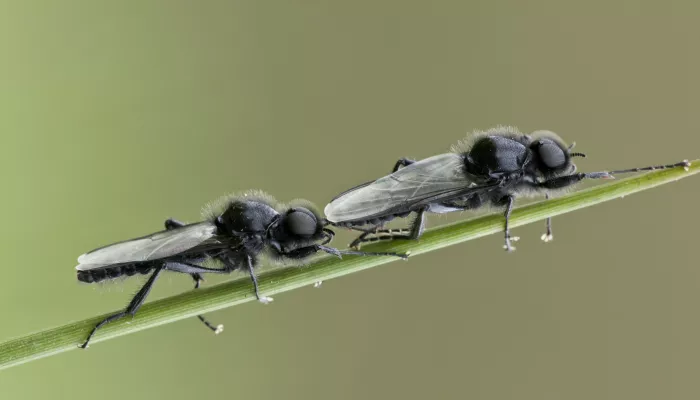 The St Mark's fly is small, black and shiny. It is so-called because it emerges around St Mark's Day, April 25th. Large numbers of adults can be found in woodland edges, hedgerows, fields and wetlands.