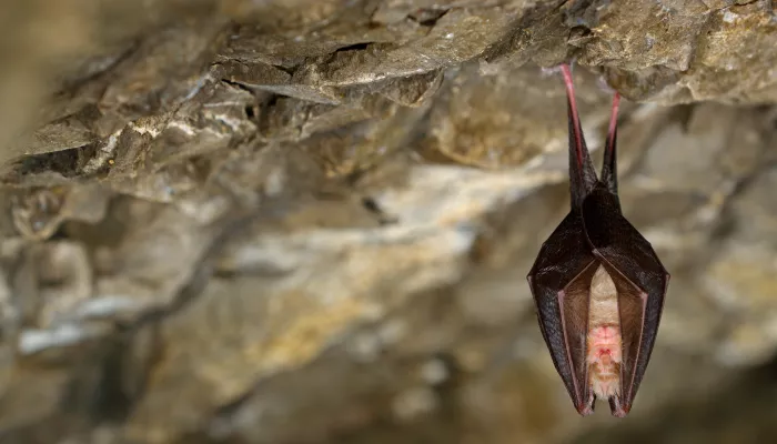 One of our smallest bats, the lesser horseshoe bat is the size of a plum. Like the greater horseshoe bat, it has a characteristically fleshy nose that is shaped like a horseshoe. Its fur is grey-brown on its back and white underneath.