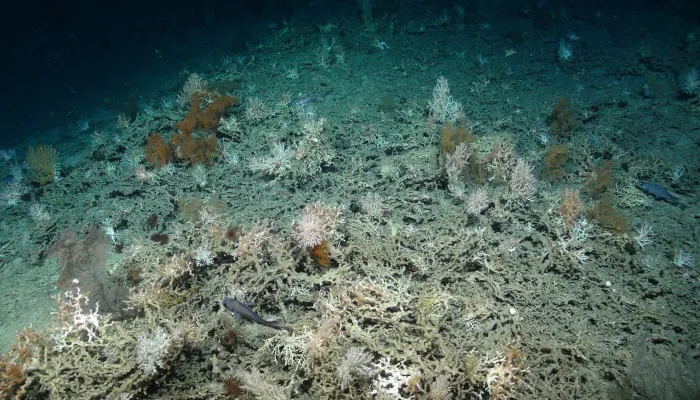A highly branching white coral that forms reefs on the deep seabed.