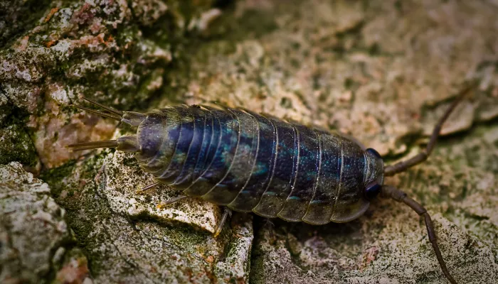 The sea slater is a type of crustacean, closely related to the woodlouse. Also known as the sea roach, they live on rocky shores all around the UK. They hide away in crevices and under rocks during the day and come out at night to feed.Like the terrestrial woodlouse, they play an important role in the ecosystem. They are detritivores and munch on decaying material like seaweed; this helps break it down and increase the surface area for decomposition by bacteria and fungi. The best time to look for sea slaters is late in the evening or at night, when they leave their hidey-holes in search of food.