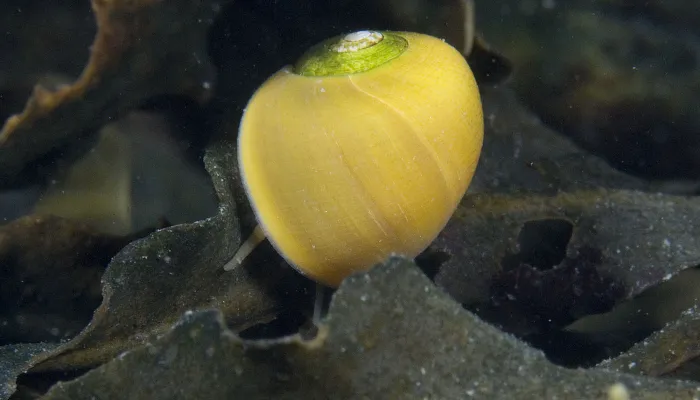 Found amongst the seaweeds on which it feeds, the flat periwinkle lives on the lower parts of the shore. It is most commonly associated with Bladder Wrack seaweed and can be mistaken for the air bladders that makes the seaweed float.They come in lots of different colours, including orange, bright yellow, banded brown and a sort of olive green that makes them hard to spot amongst their seaweed home.