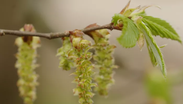 The Common hornbeam is an abundant tree in Southern and Eastern England, but is not as familiar as other woodland species, perhaps due to its general confinement to ancient woodlands. Its large catkins appear in late spring, and its large, winged seeds can be spotted in autumn as they are dispersed by the wind. The wood of the Common hornbeam is notoriously hard and difficult to work with, hence its other name of 'Hardbeam'.