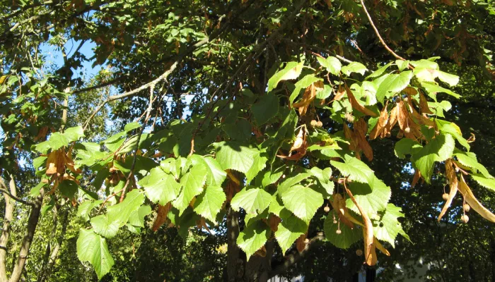 The Large-leaved lime is a tall, broad tree of forests and parkland where it was often planted. It is a scarce wild plant in the UK and can be found in patches across England and Wales. Its flowers attract a huge number of insects looking for nectar, while its leaves are popular with caterpillars of the Lime hawk moth, among other species. It produces large-winged, nut-like fruits that disperse its seeds by the wind.