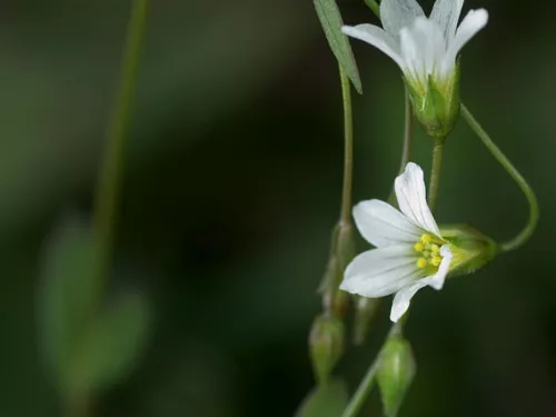 Look for the pretty, star-shaped, white flowers of Lesser stitchwort in woodlands and meadows, and along hedgerows and roadside verges in spring. Its flowers are smaller than those of Greater stitchwort.