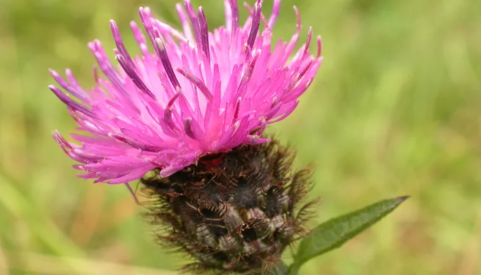 Common knapweed, also known as 'black knapweed', is a thistle-like plant that can be found on all kinds of grasslands, from roadside verges to woodland rides, clifftops to lawns. It is in bloom from June to September and is a huge favourite of all kinds of butterflies, including common blues, marbled whites and meadow browns, and is sometimes covered in these species.