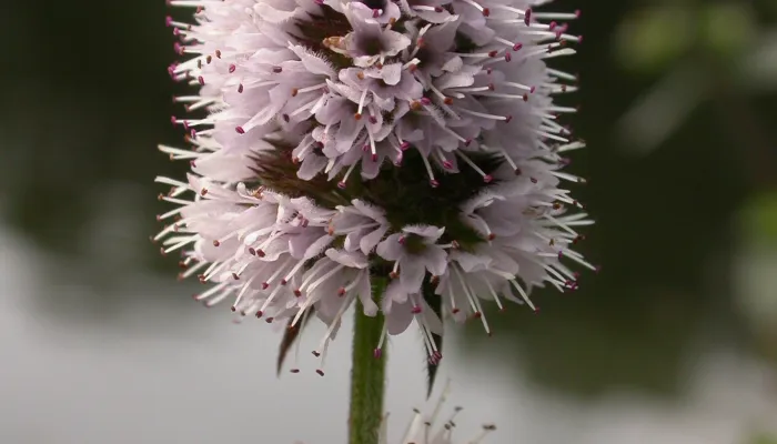 Water mint has hairy, oval, toothed leaves that appear in whorls around the reddish stems. It produces dense clusters of lilac-pink flowers at the ends of its stems.